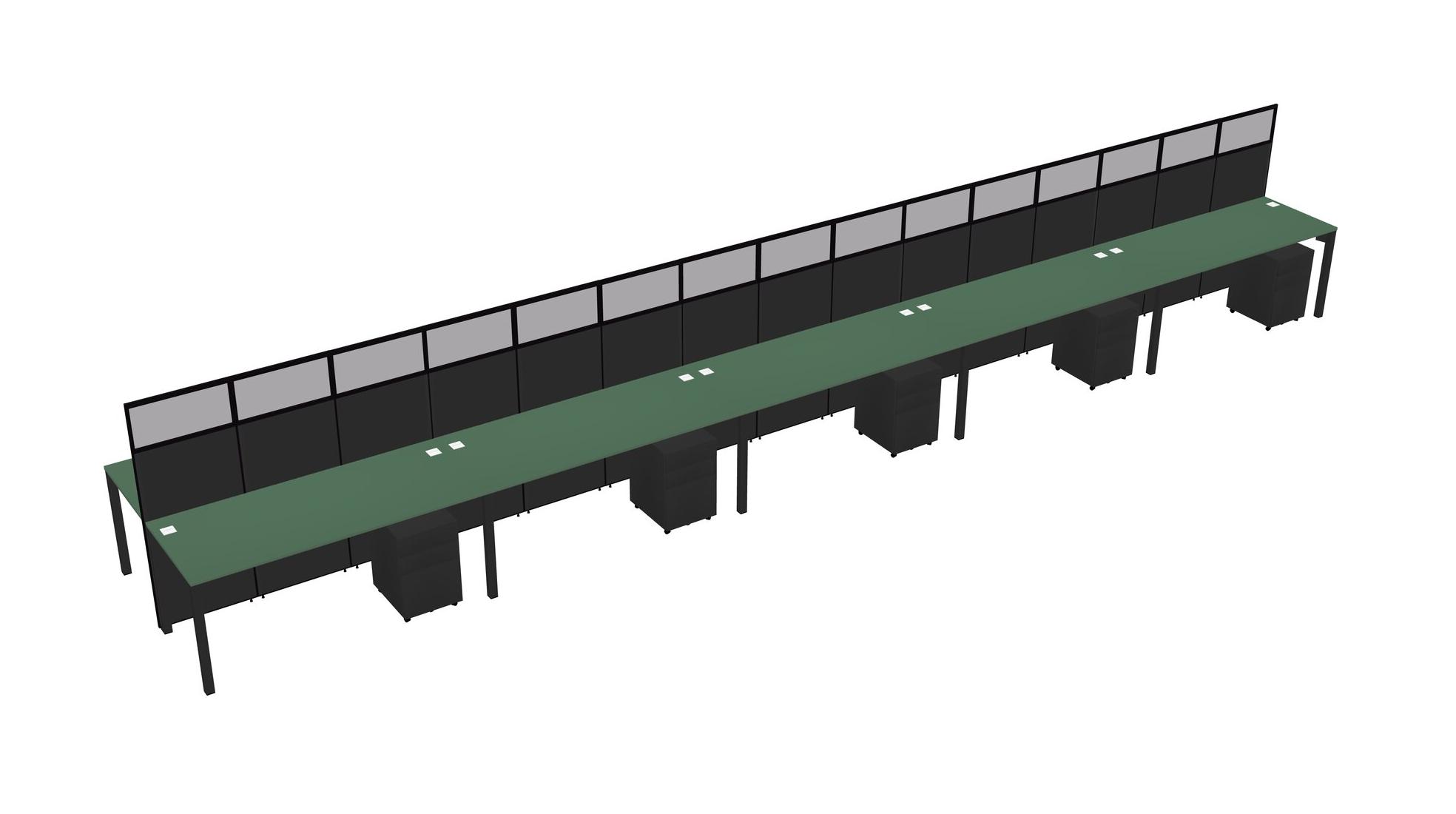 Green Shared Rectangular Office Cubicle Panel System With Mobile Drawers For 10 Persons