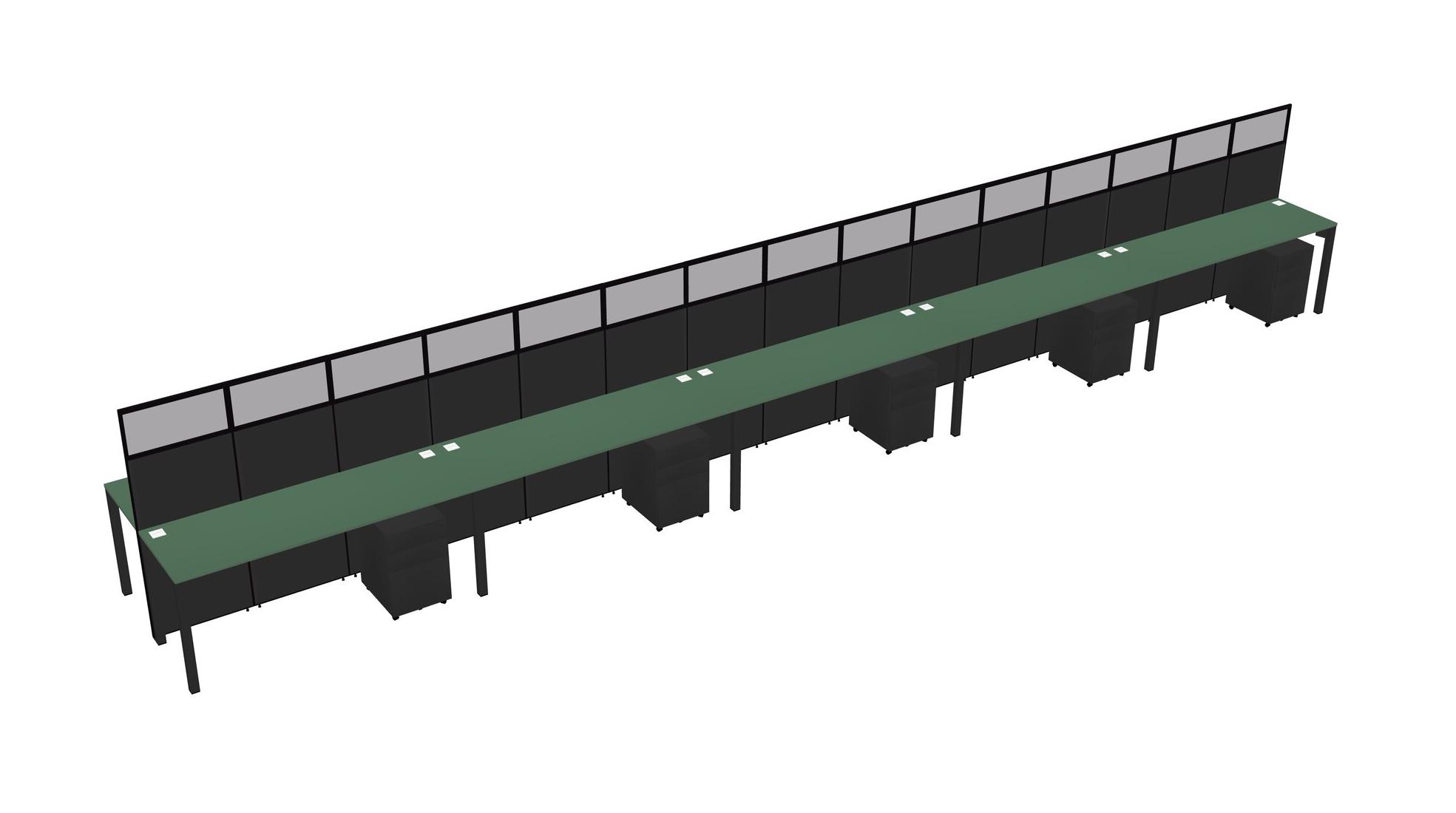 Green Shared Rectangular Office Cubicle Panel System With Mobile Drawers For 10 Persons