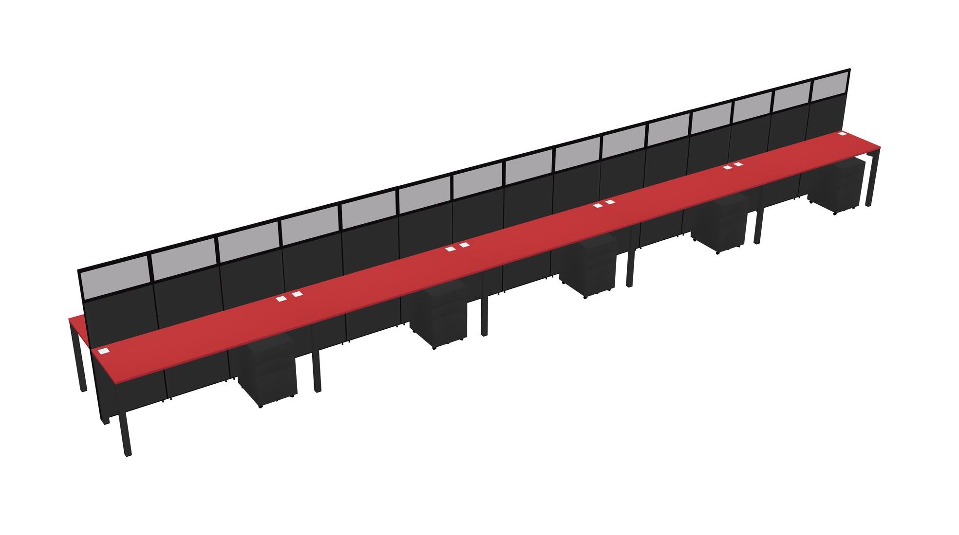 Prism Red Shared Rectangular Office Cubicle Panel System With Mobile Drawers For 10 Persons