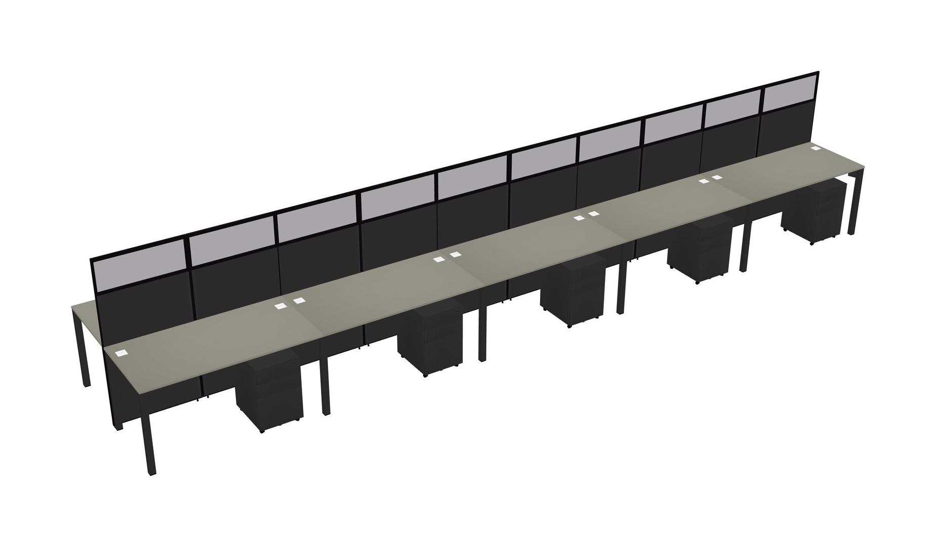 Grey Shadows Shared Rectangular Office Cubicle Panel System With Mobile Drawers For 10 Persons