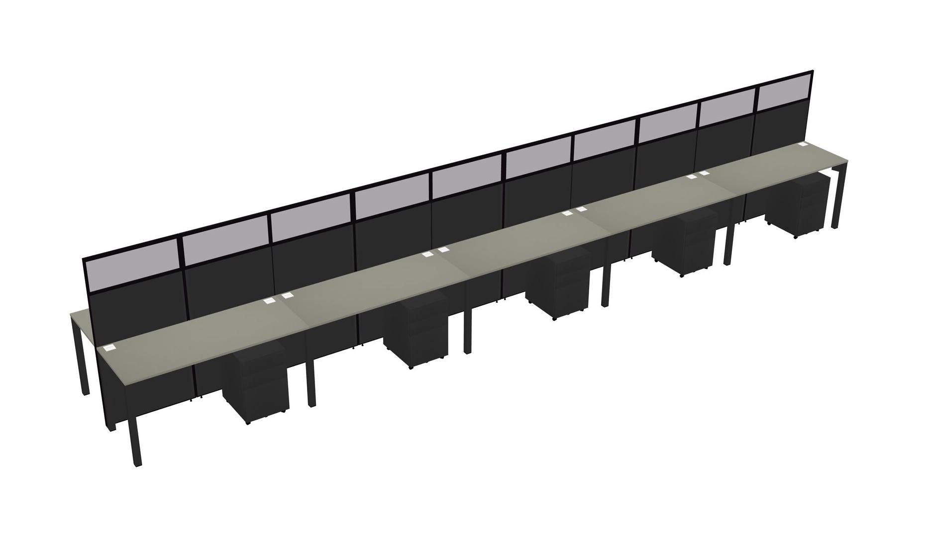 Grey Shadows Shared Rectangular Office Cubicle Panel System With Mobile Drawers For 10 Persons