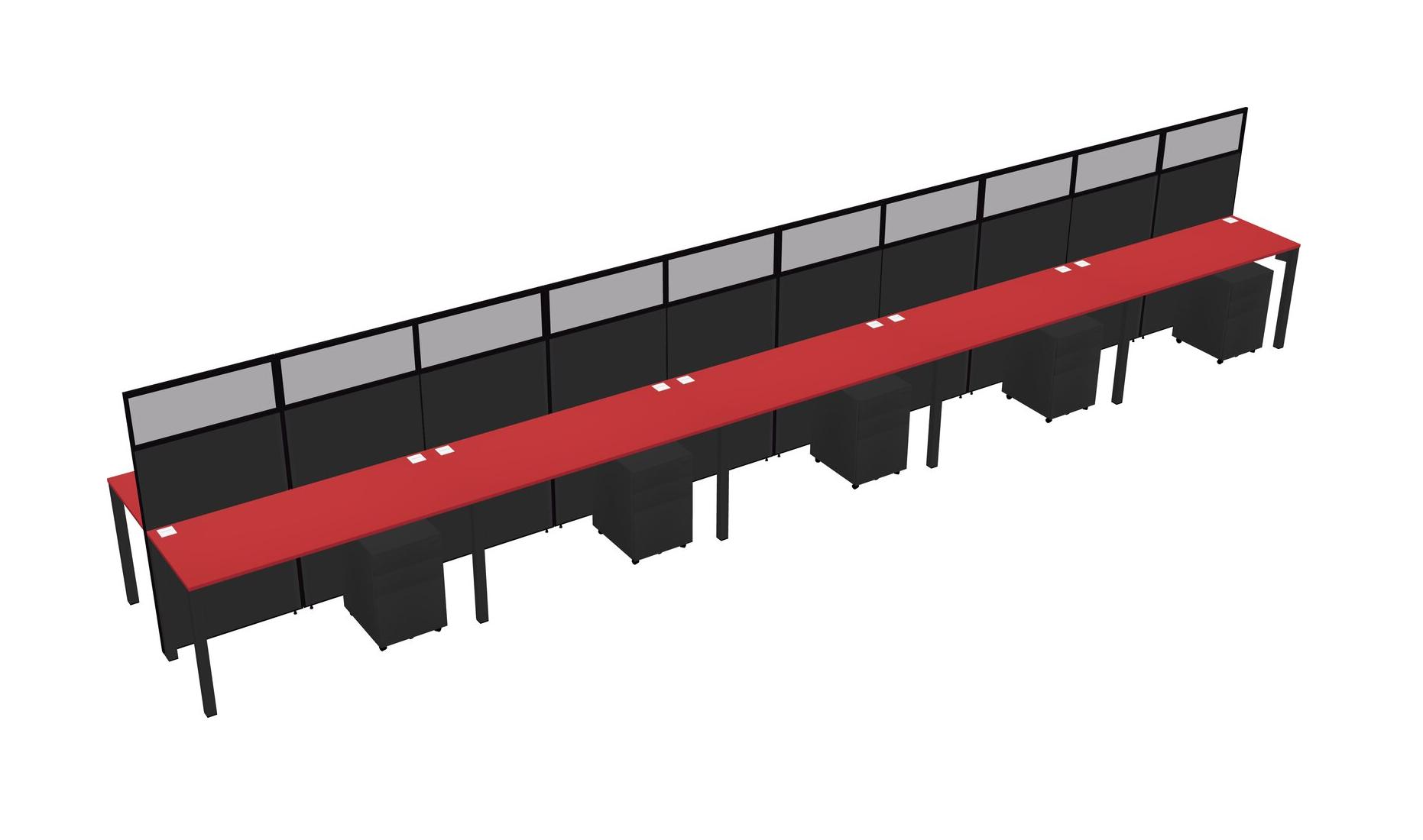Prism Red Shared Rectangular Office Cubicle Panel System With Mobile Drawers For 10 Persons