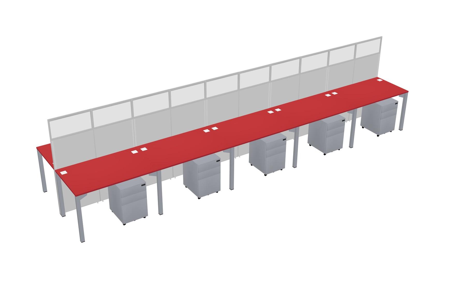 Prism Red Shared Rectangular Office Cubicle Panel System With Mobile Drawers For 10 Persons