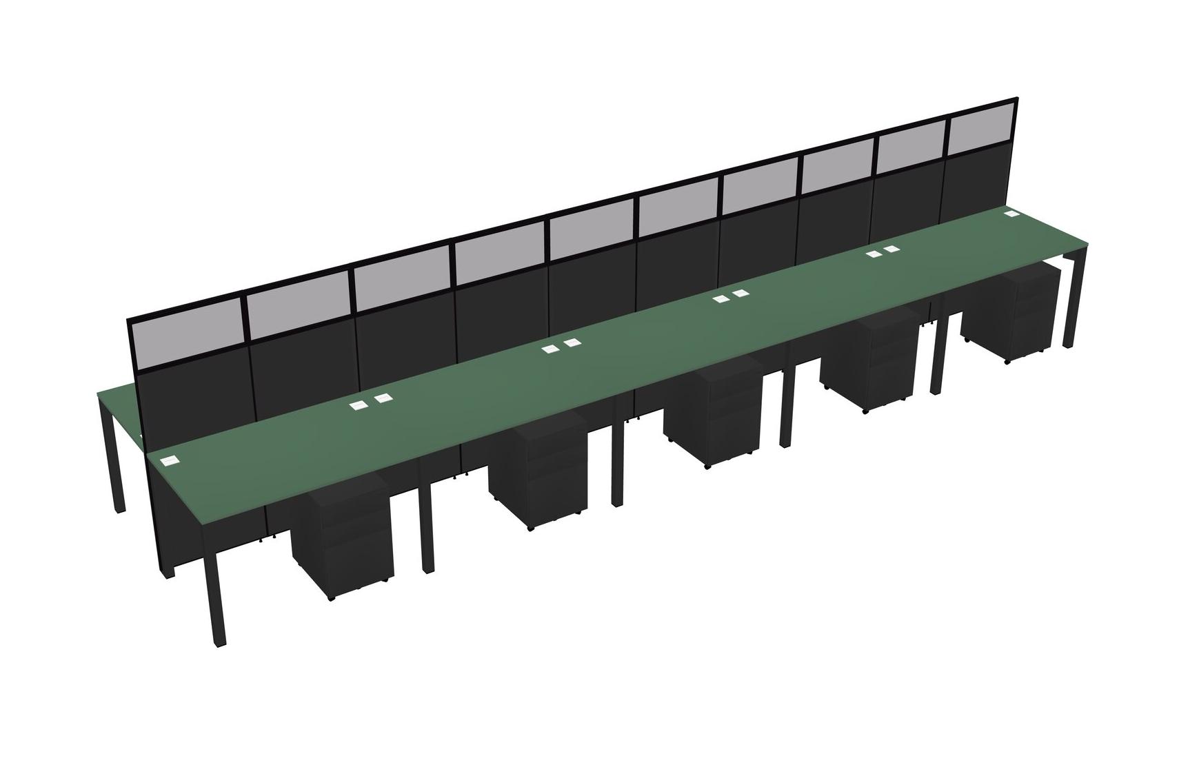 Green Shared Rectangular Office Cubicle Panel System With Mobile Drawers For 10 Persons