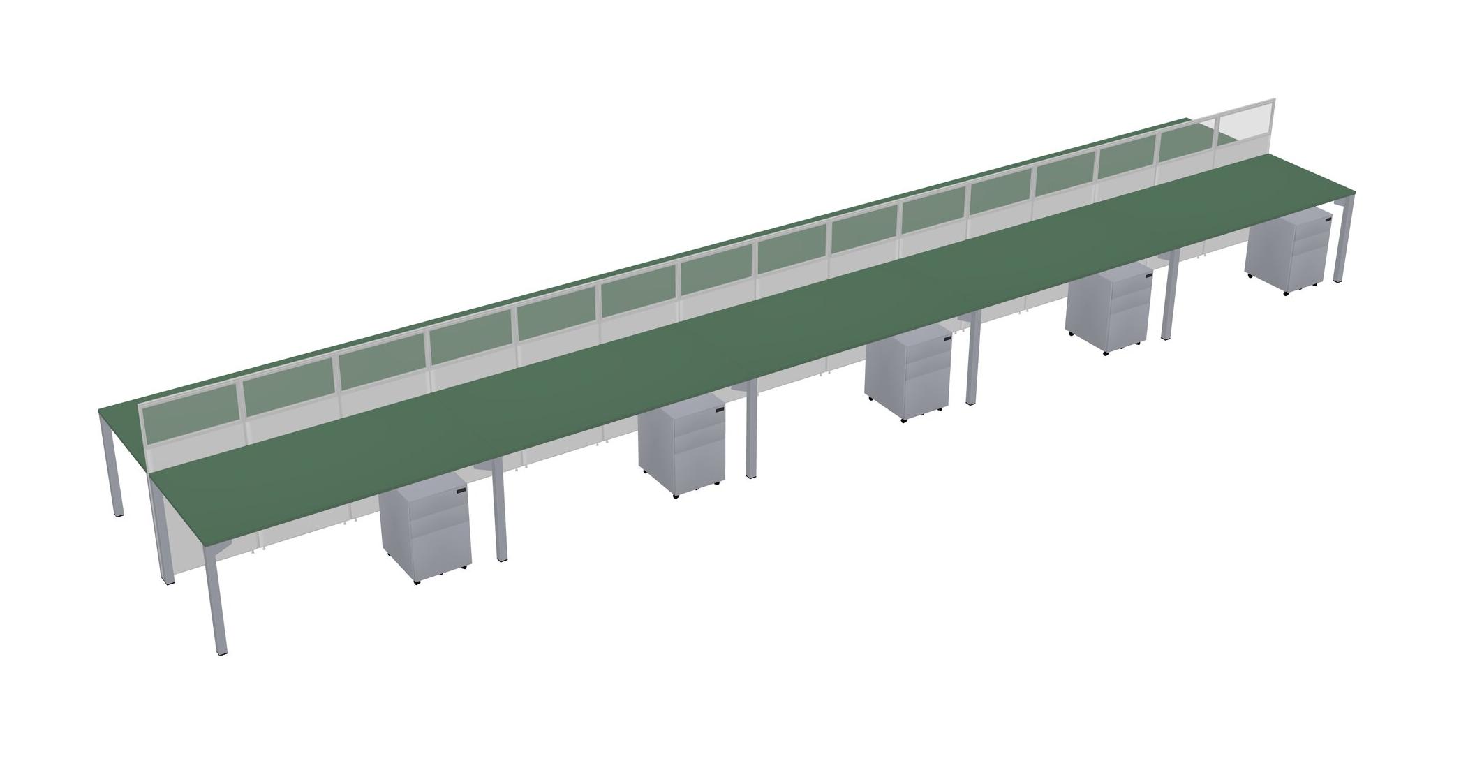 Green Shared Rectangular Office Cubicle Panel System With Mobile Drawers For 10 Persons