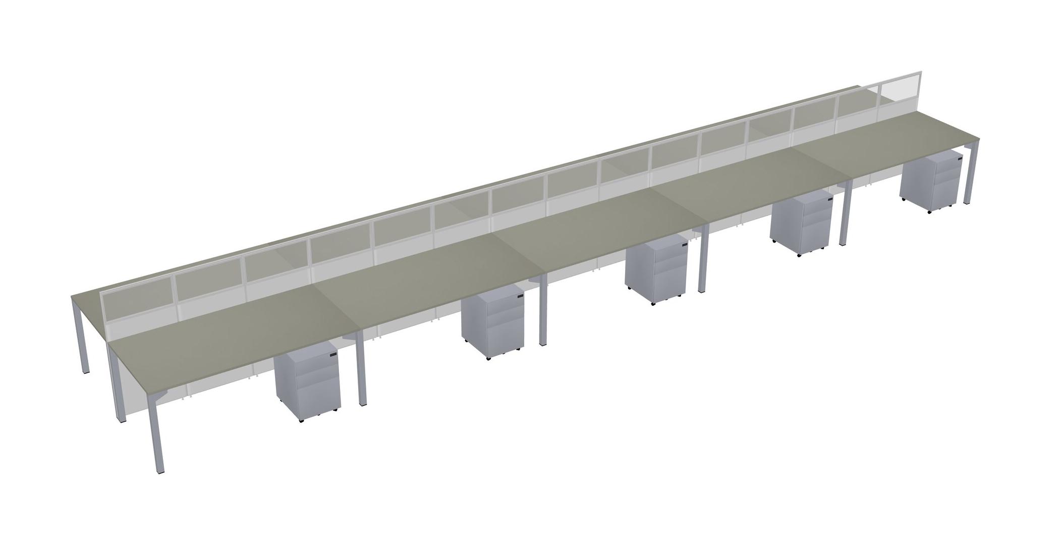 Grey Shadows Shared Rectangular Office Cubicle Panel System With Mobile Drawers For 10 Persons