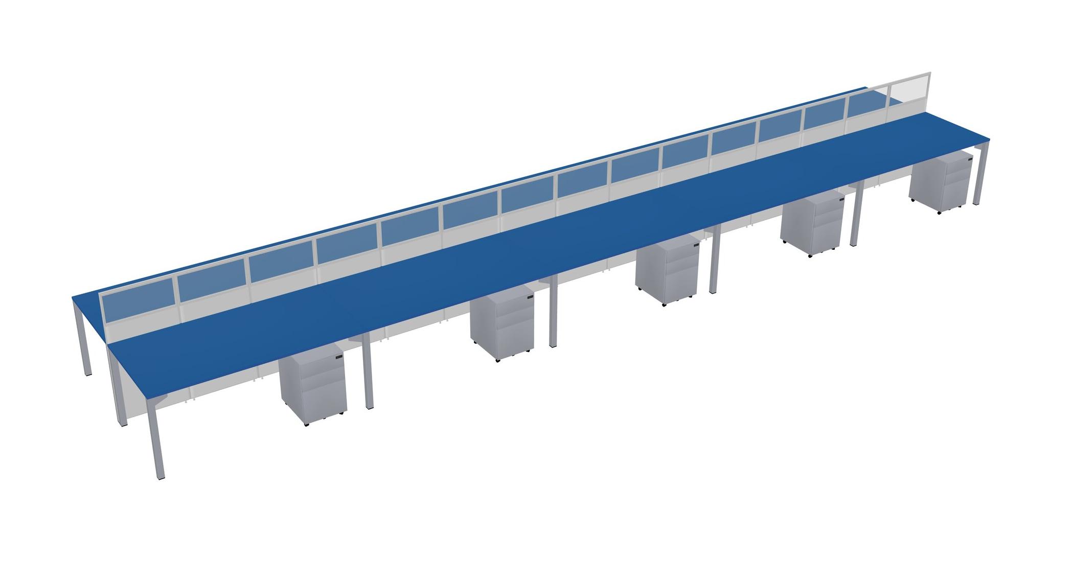 Prism Blue Shared Rectangular Office Cubicle Panel System With Mobile Drawers For 10 Persons