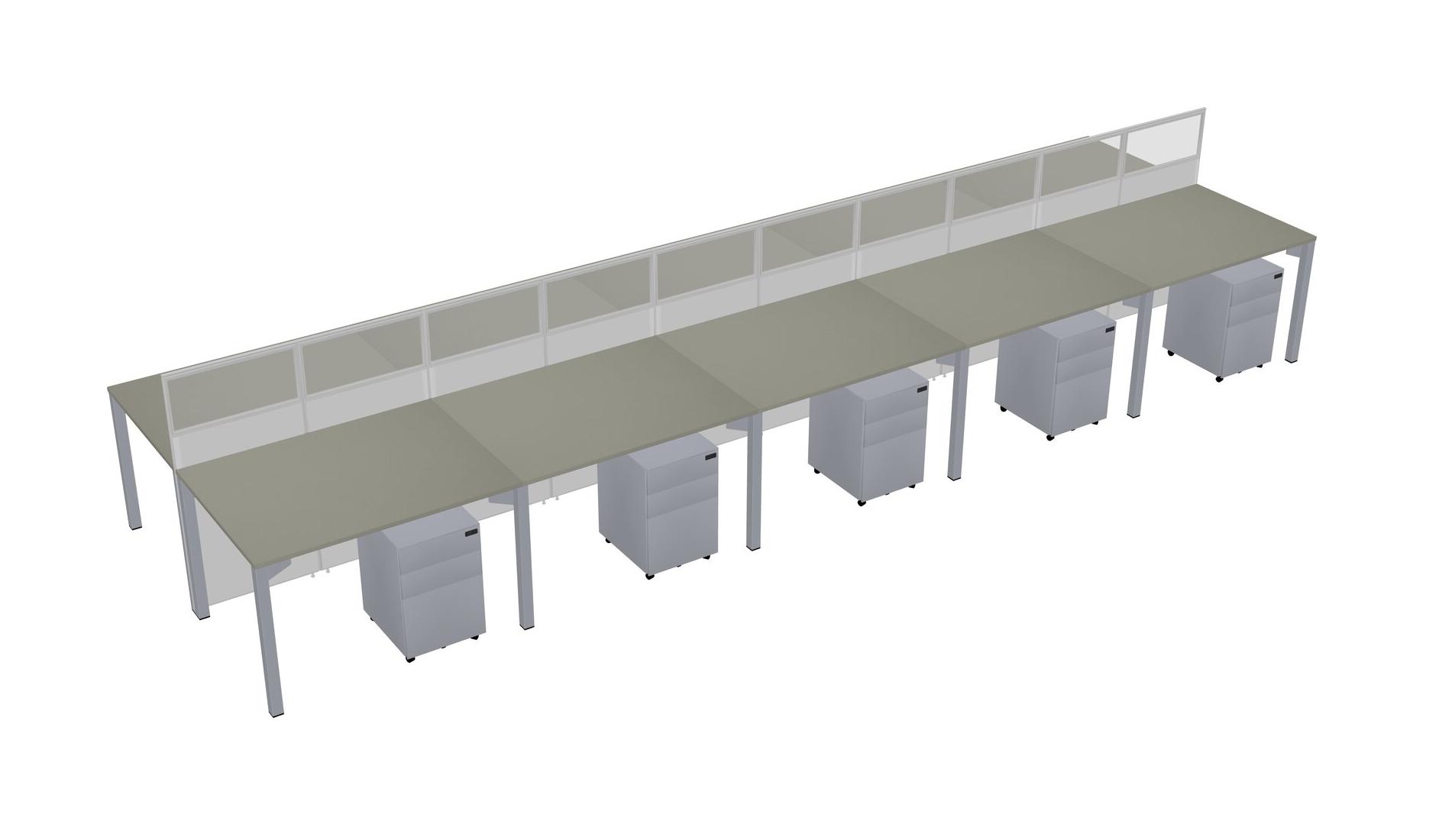 Grey Shadows Shared Rectangular Office Cubicle Panel System With Mobile Drawers For 10 Persons