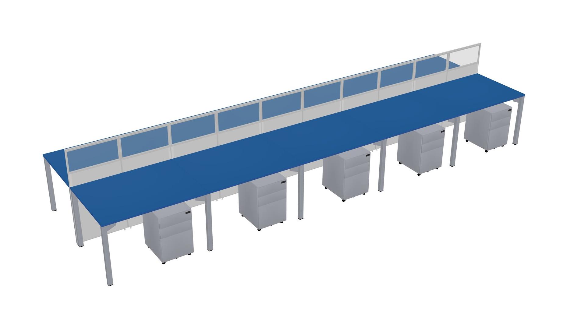 Prism Blue Shared Rectangular Office Cubicle Panel System With Mobile Drawers For 10 Persons