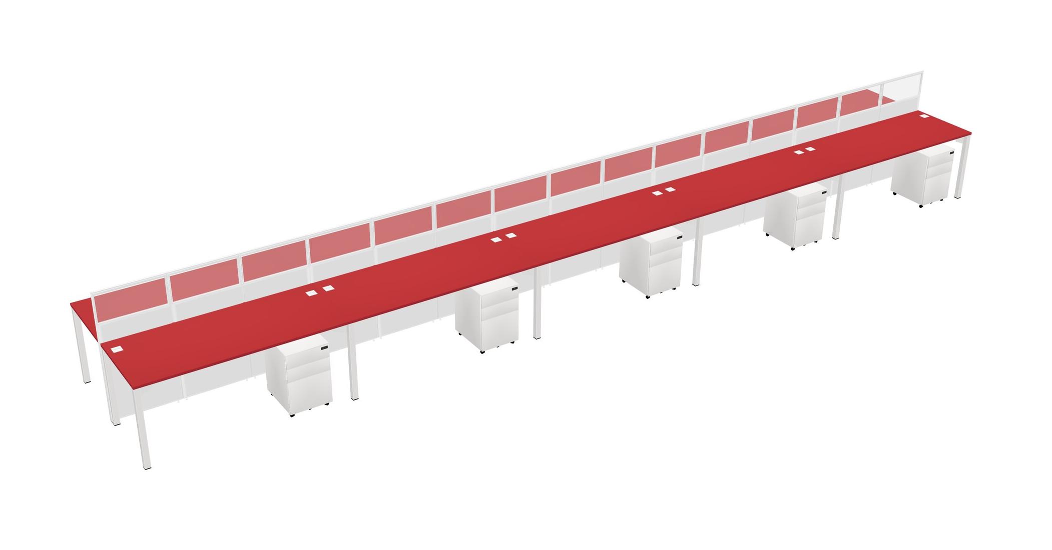 Prism Red Shared Rectangular Office Cubicle Panel System With Mobile Drawers For 10 Persons