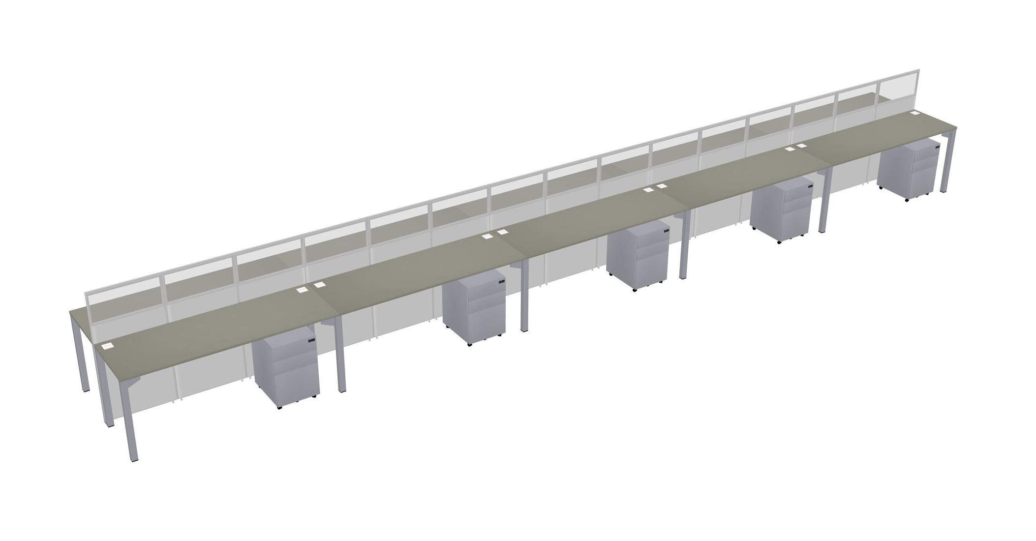Grey Shadows Shared Rectangular Office Cubicle Panel System With Mobile Drawers For 10 Persons