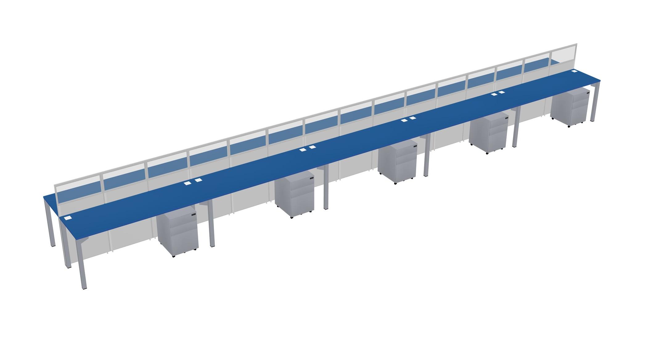 Prism Blue Shared Rectangular Office Cubicle Panel System With Mobile Drawers For 10 Persons