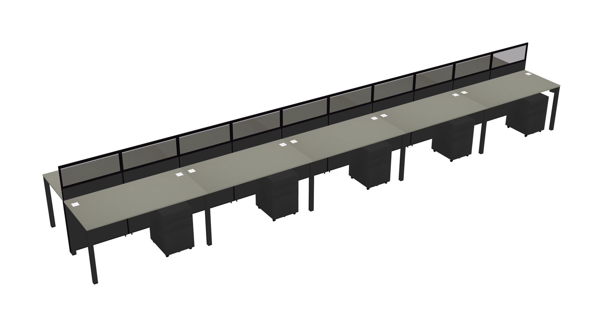Grey Shadows Shared Rectangular Office Cubicle Panel System With Mobile Drawers For 10 Persons