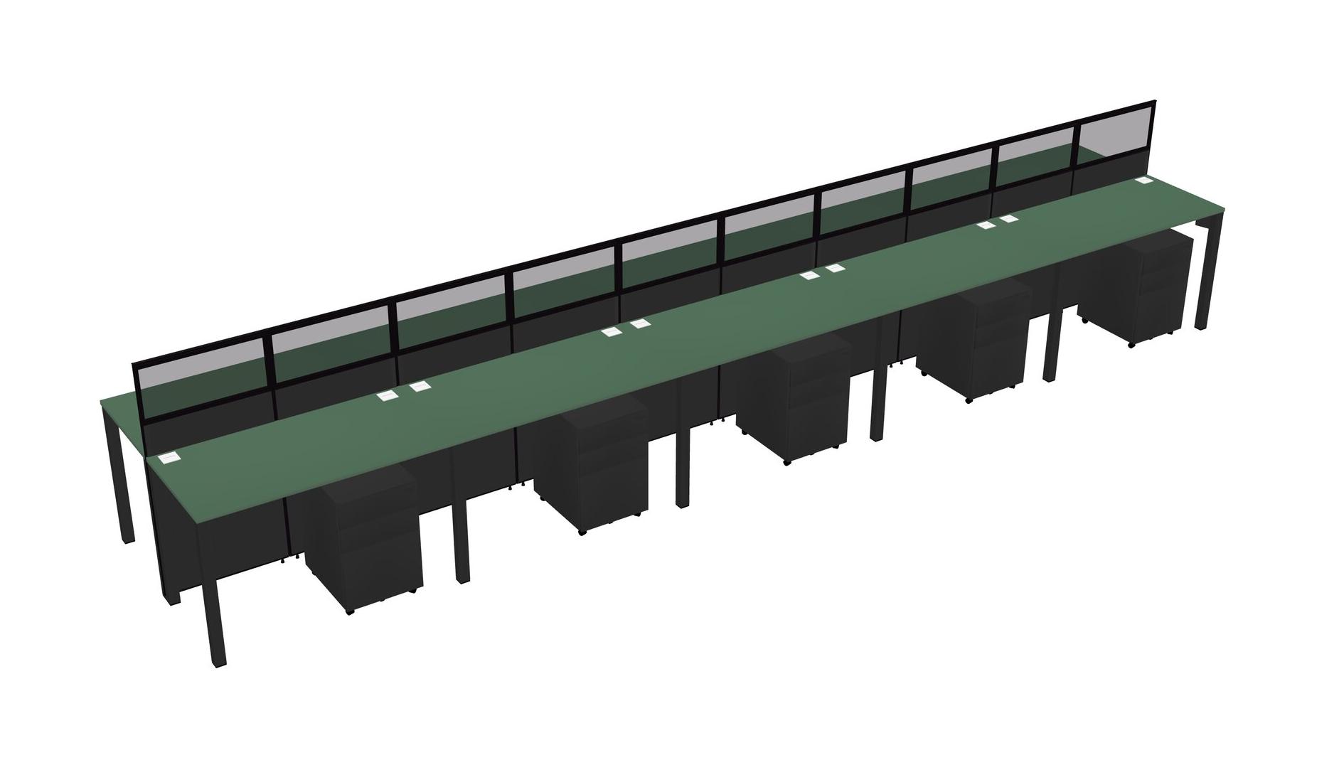 Green Shared Rectangular Office Cubicle Panel System With Mobile Drawers For 10 Persons