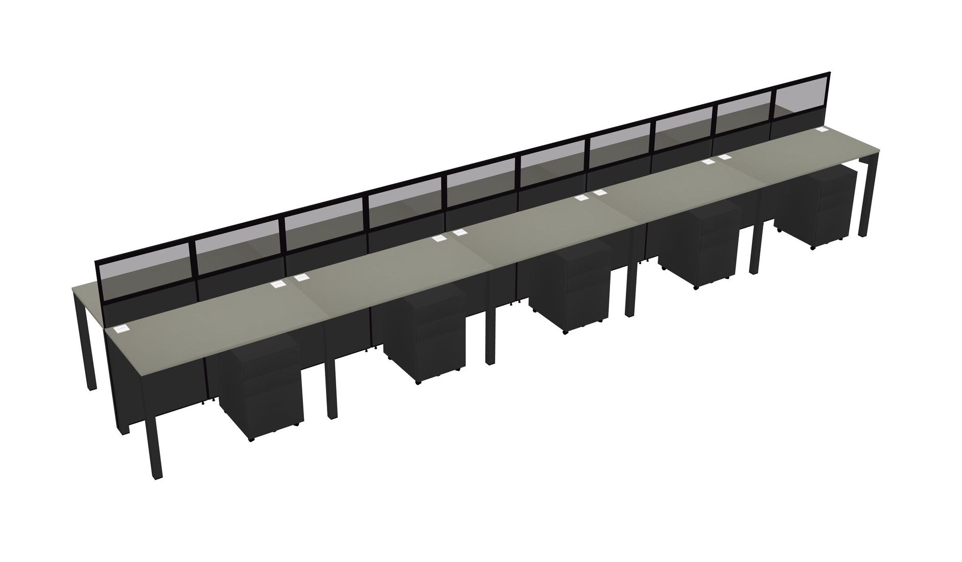 Grey Shadows Shared Rectangular Office Cubicle Panel System With Mobile Drawers For 10 Persons