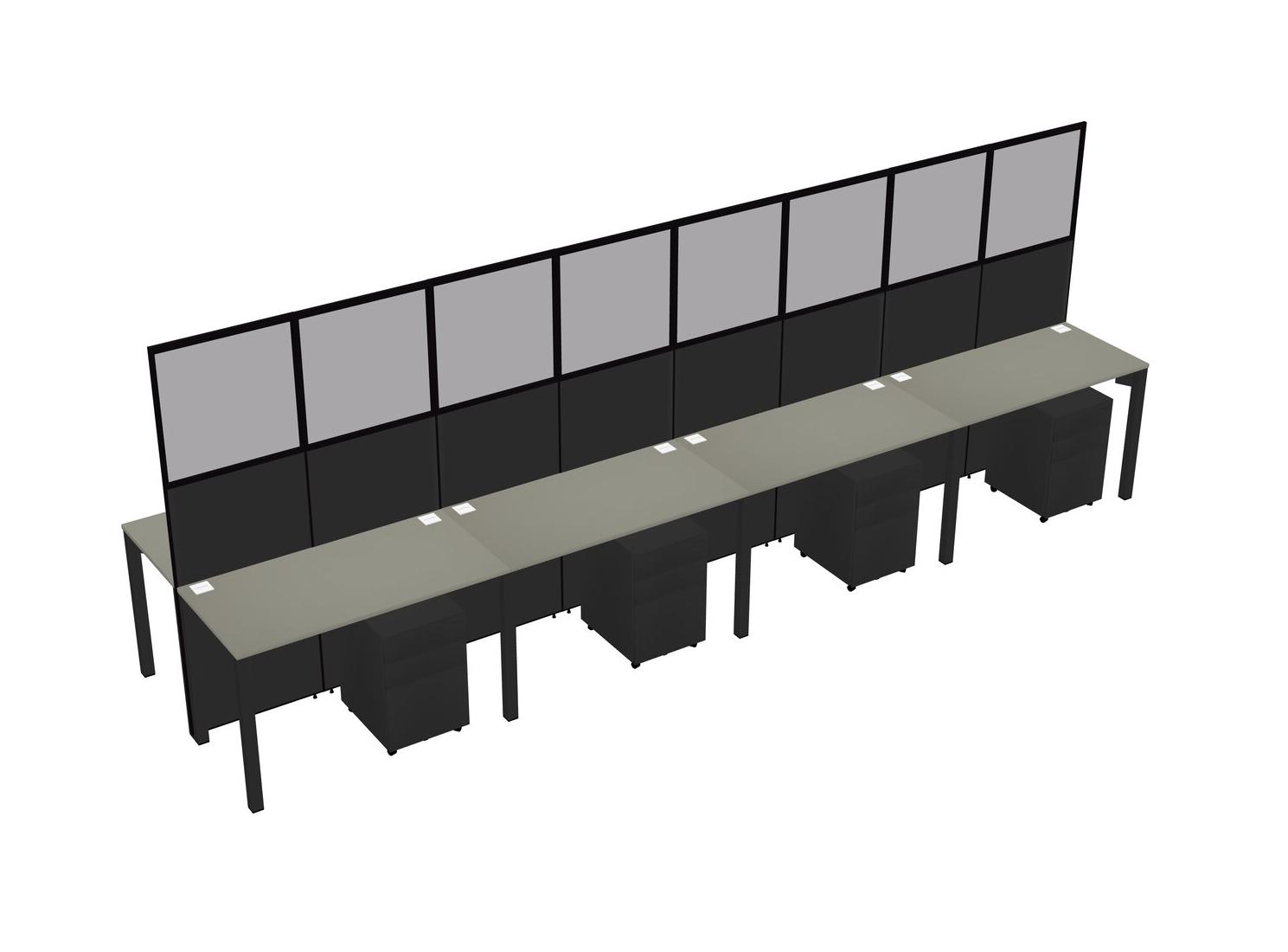 Grey Shadows Shared Rectangular Office Cubicle Panel System With Mobile Drawers For 8 Persons