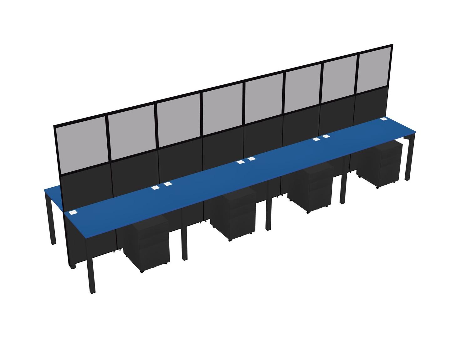 Prism Blue Shared Rectangular Office Cubicle Panel System With Mobile Drawers For 8 Persons