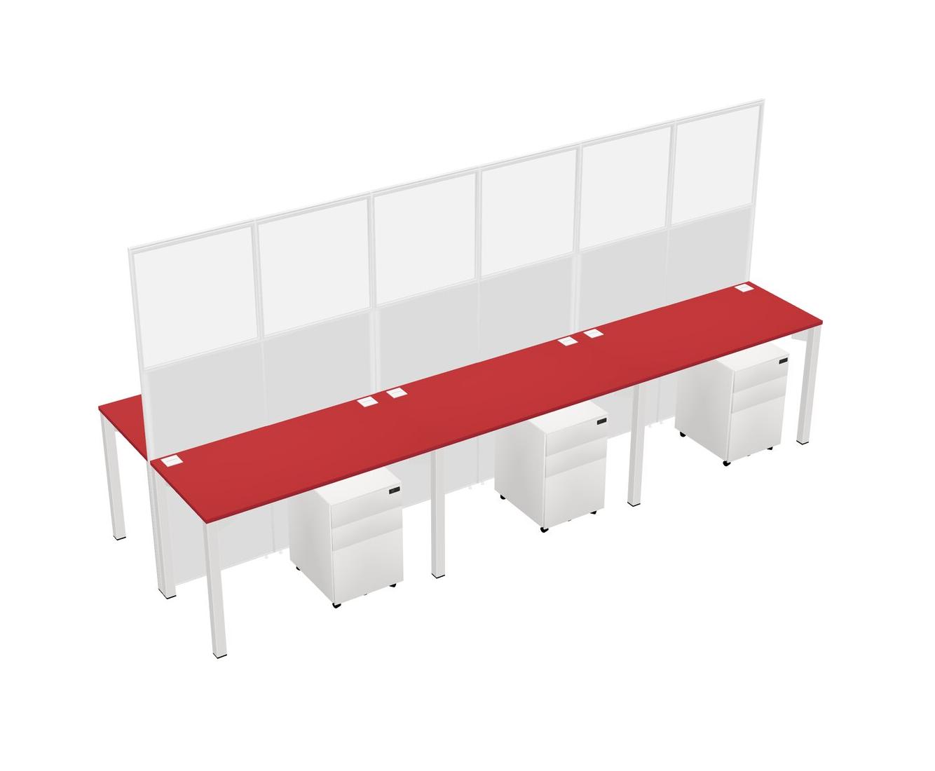 Prism Red Shared Rectangular Office Cubicle Panel System With Mobile Drawers For 6 Persons