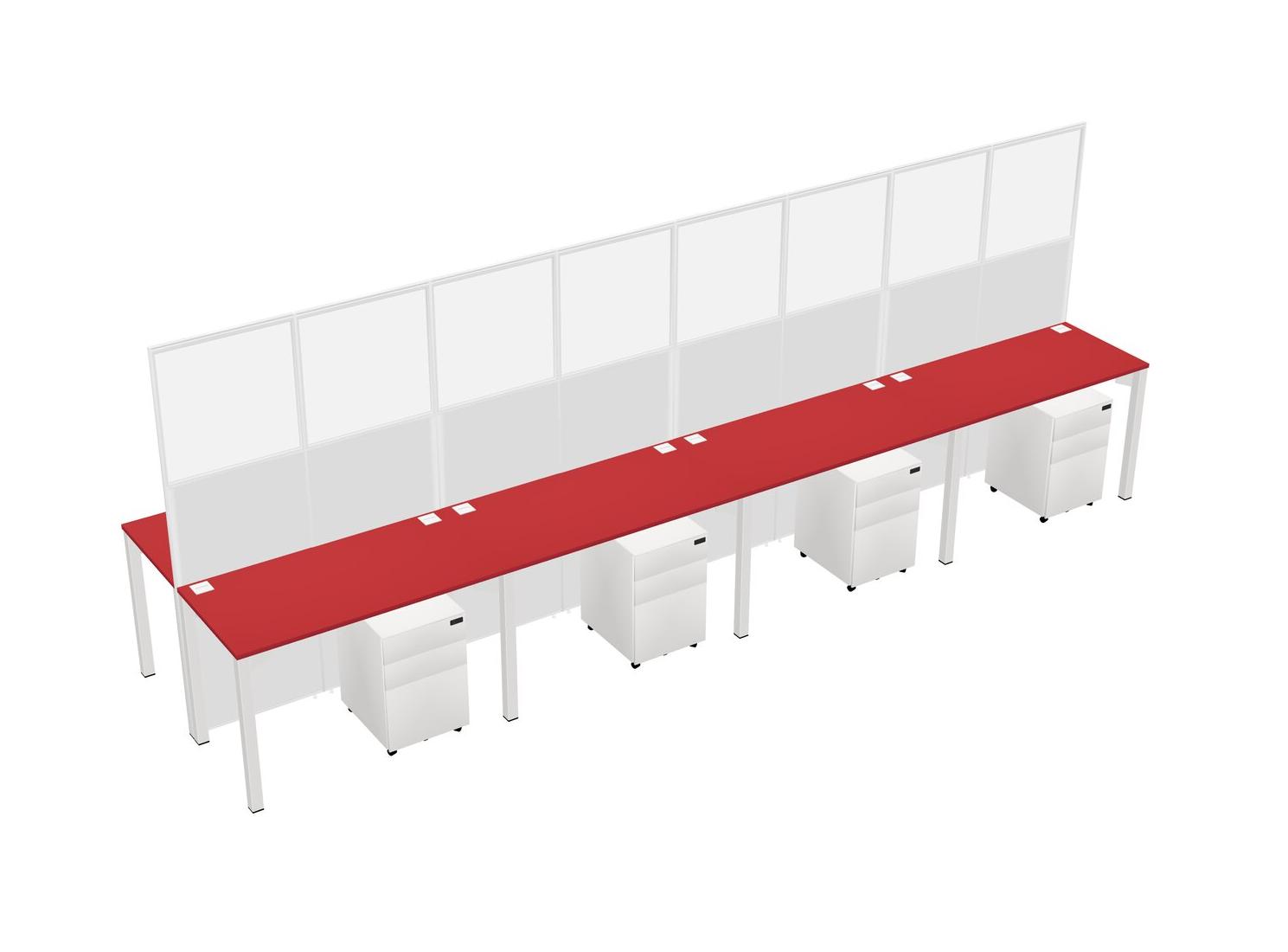 Prism Red Shared Rectangular Office Cubicle Panel System With Mobile Drawers For 8 Persons