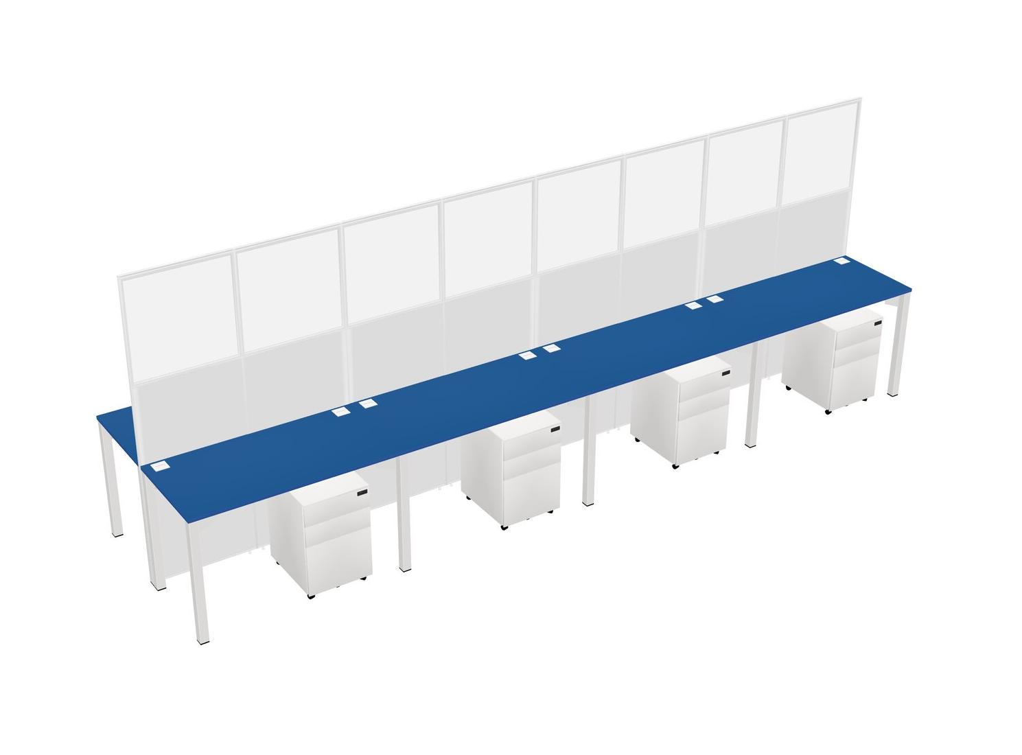Prism Blue Shared Rectangular Office Cubicle Panel System With Mobile Drawers For 8 Persons