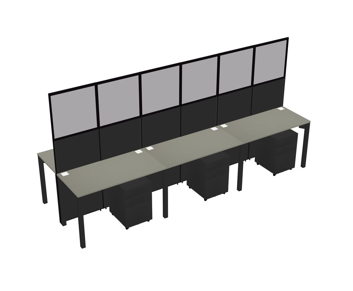 Grey Shadows Shared Rectangular Office Cubicle Panel System With Mobile Drawers For 6 Persons