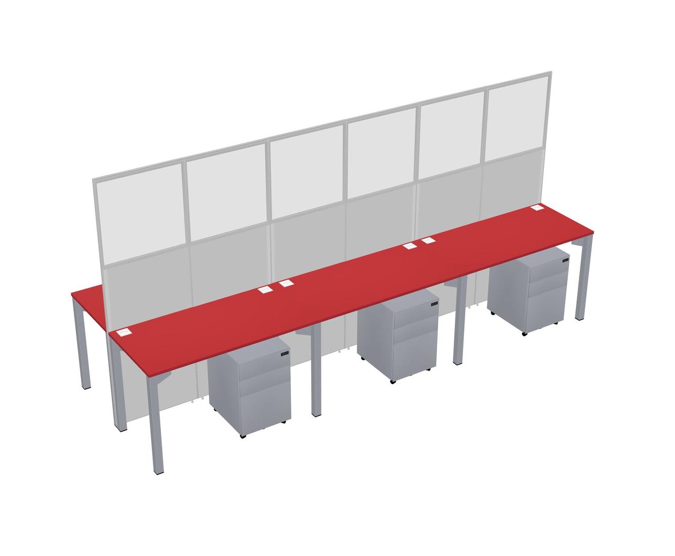 Prism Red Shared Rectangular Office Cubicle Panel System With Mobile Drawers For 6 Persons