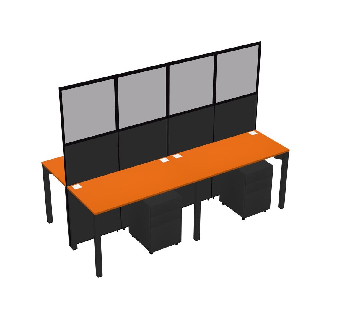 Orange Shared Rectangular Office Cubicle Panel System With Mobile Drawers For 4 Persons