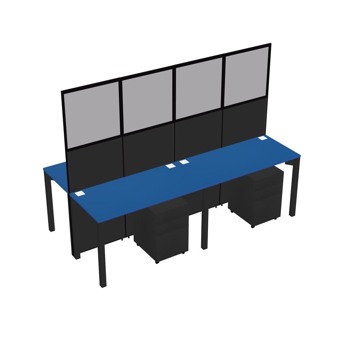 Prism Blue Shared Rectangular Office Cubicle Panel System With Mobile Drawers For 4 Persons