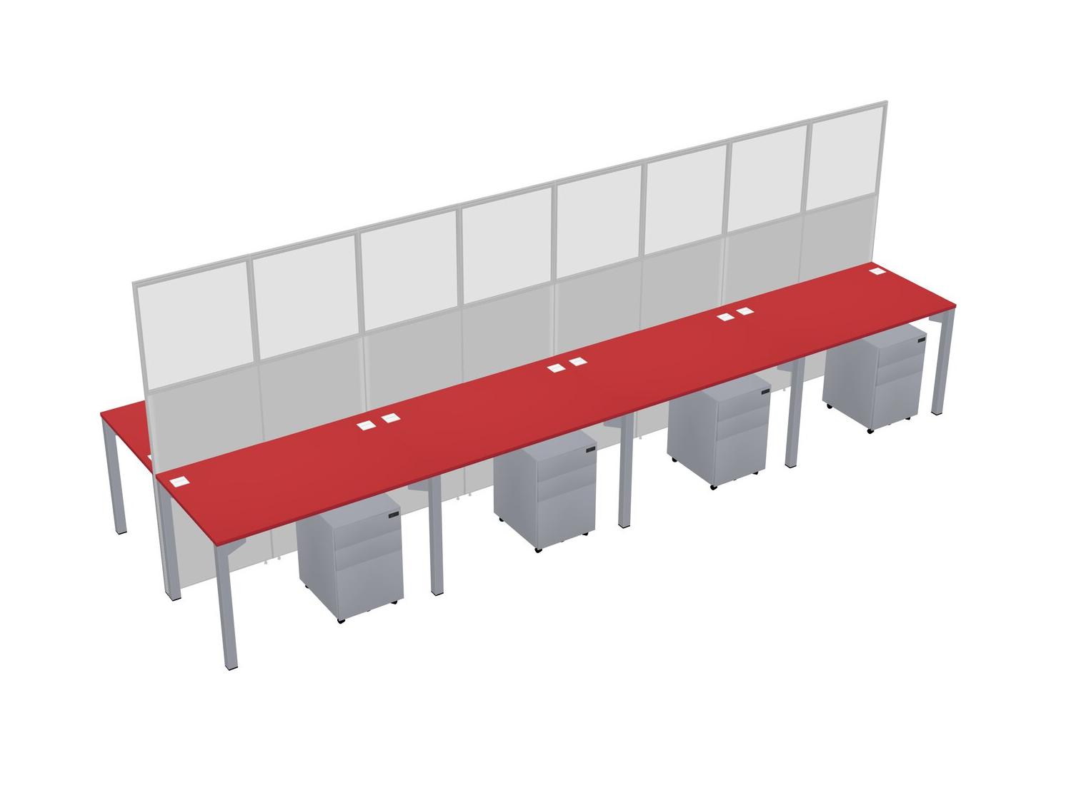 Prism Red Shared Rectangular Office Cubicle Panel System With Mobile Drawers For 8 Persons