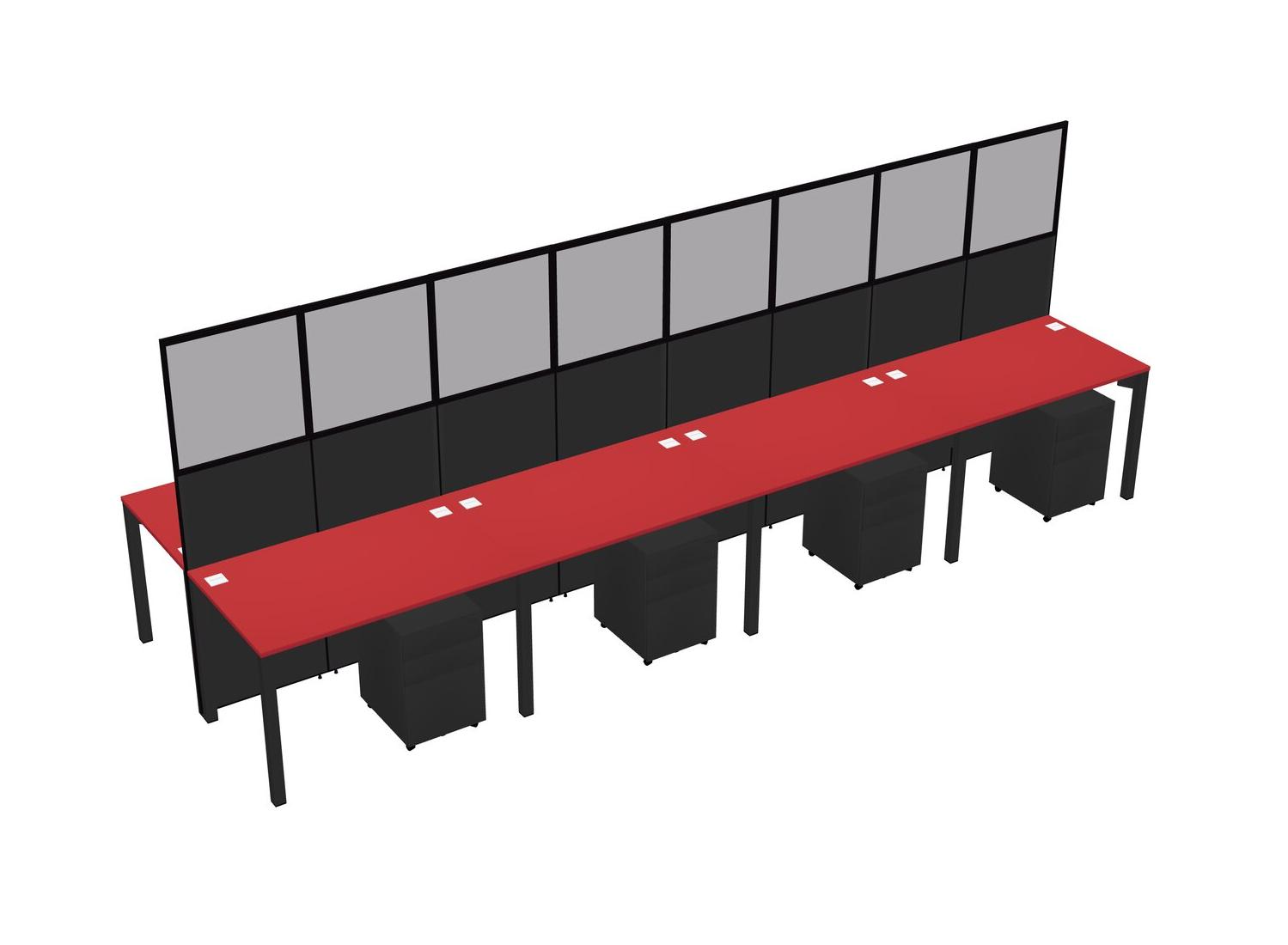 Prism Red Shared Rectangular Office Cubicle Panel System With Mobile Drawers For 8 Persons