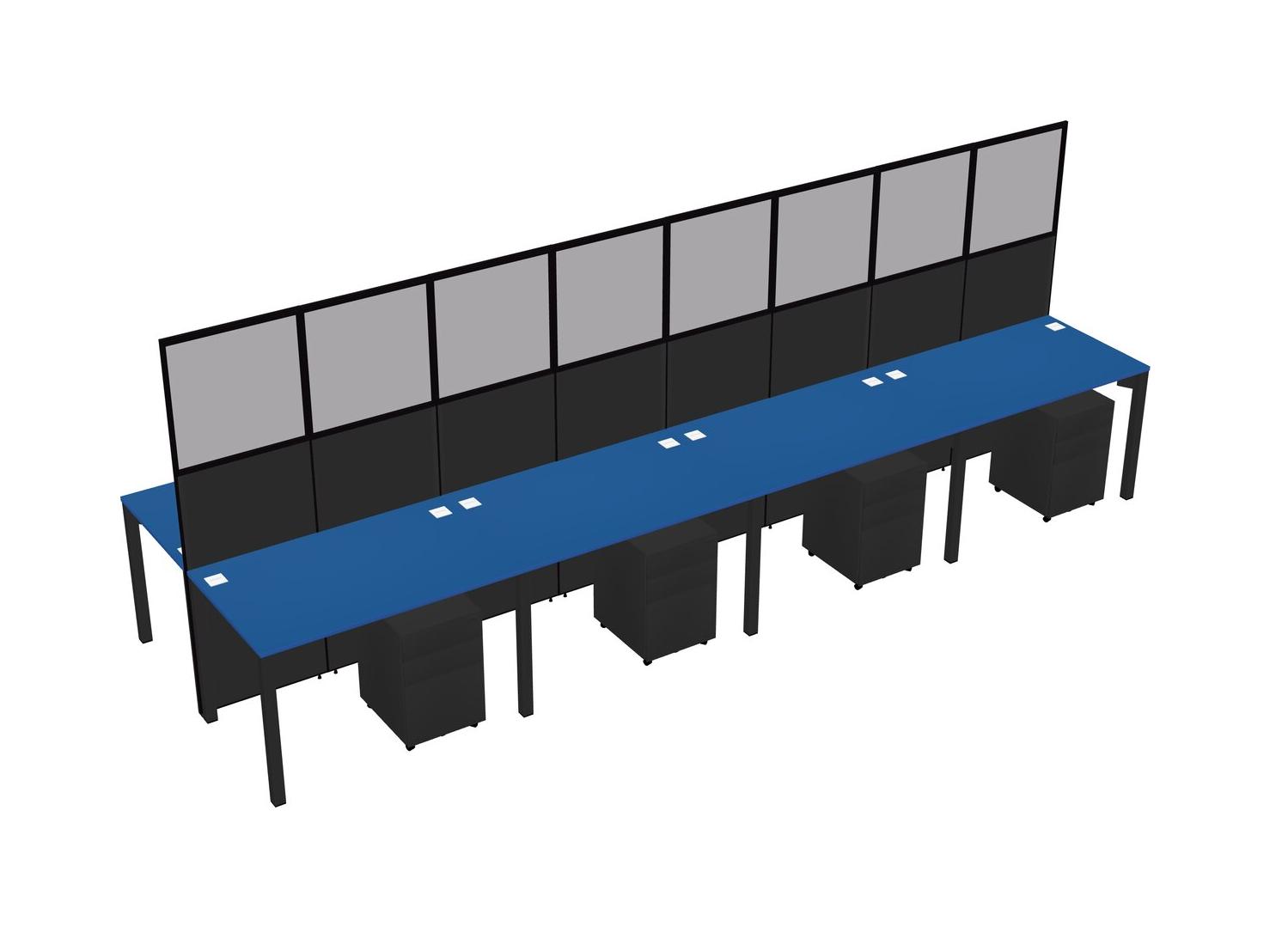 Prism Blue Shared Rectangular Office Cubicle Panel System With Mobile Drawers For 8 Persons