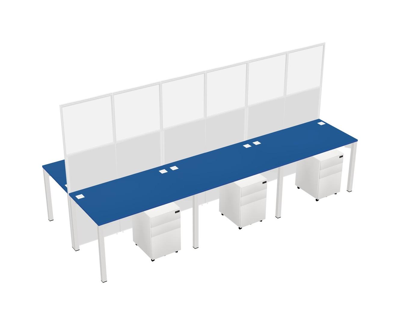 Prism Blue Shared Rectangular Office Cubicle Panel System With Mobile Drawers For 6 Persons