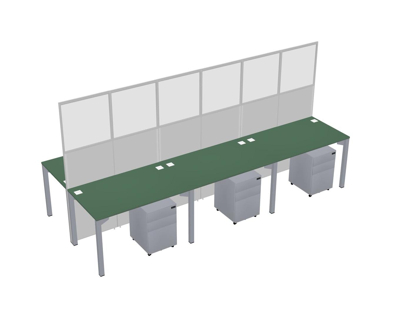 Green Shared Rectangular Office Cubicle Panel System With Mobile Drawers For 6 Persons