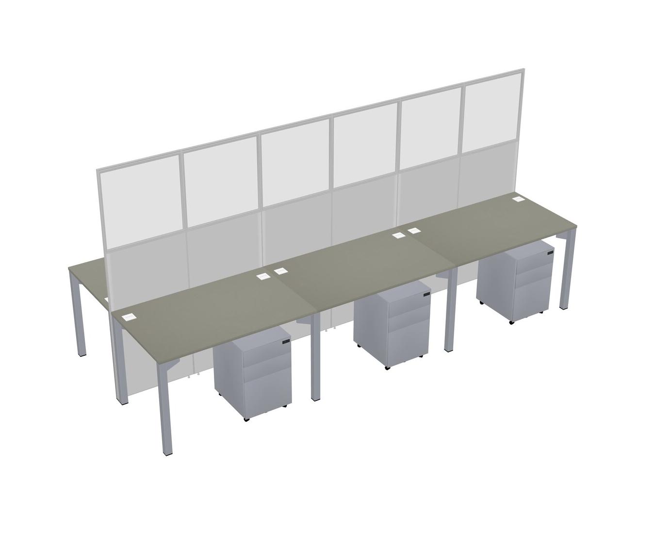 Grey Shadows Shared Rectangular Office Cubicle Panel System With Mobile Drawers For 6 Persons