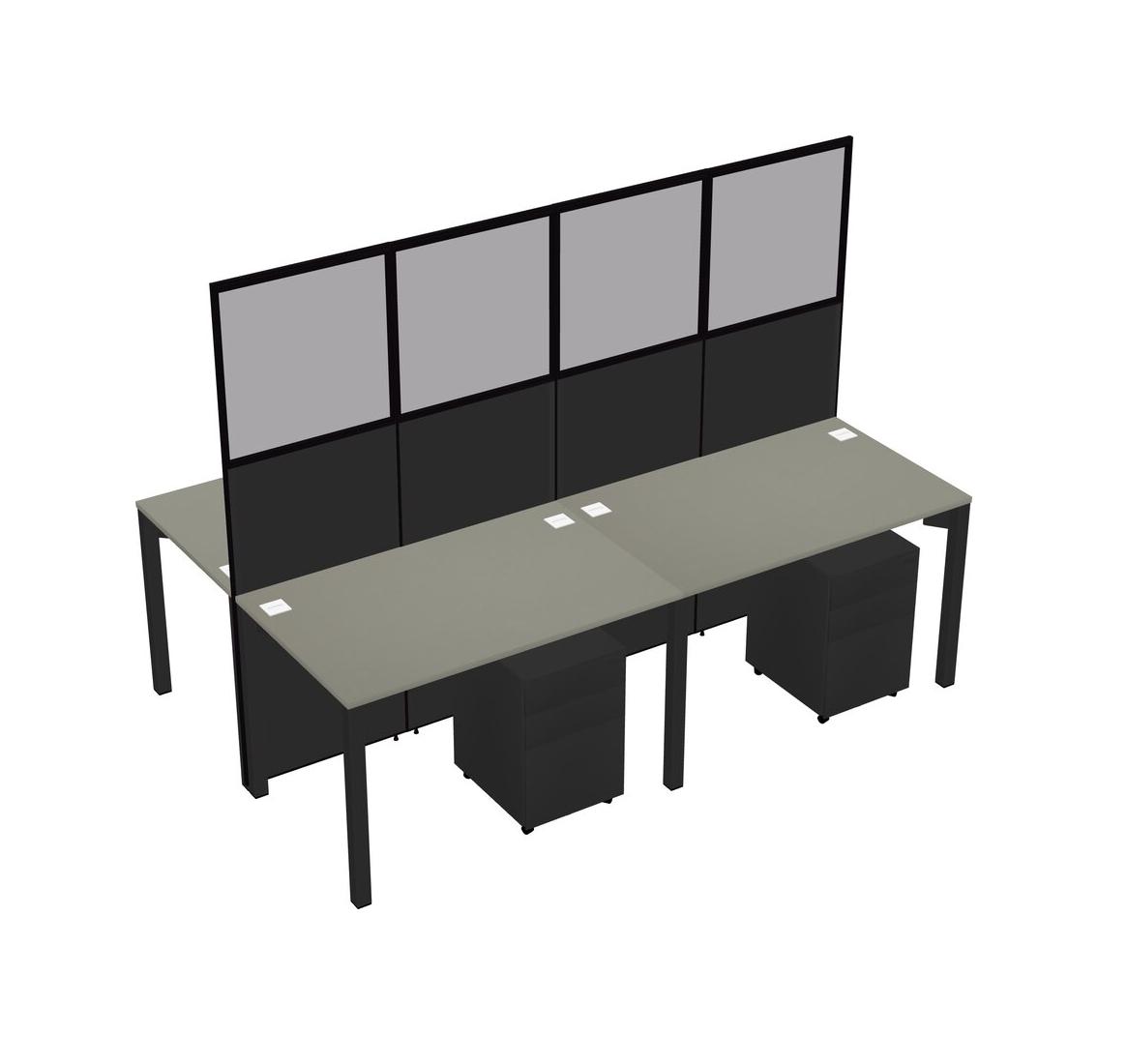 Grey Shadows Shared Rectangular Office Cubicle Panel System With Mobile Drawers For 4 Persons