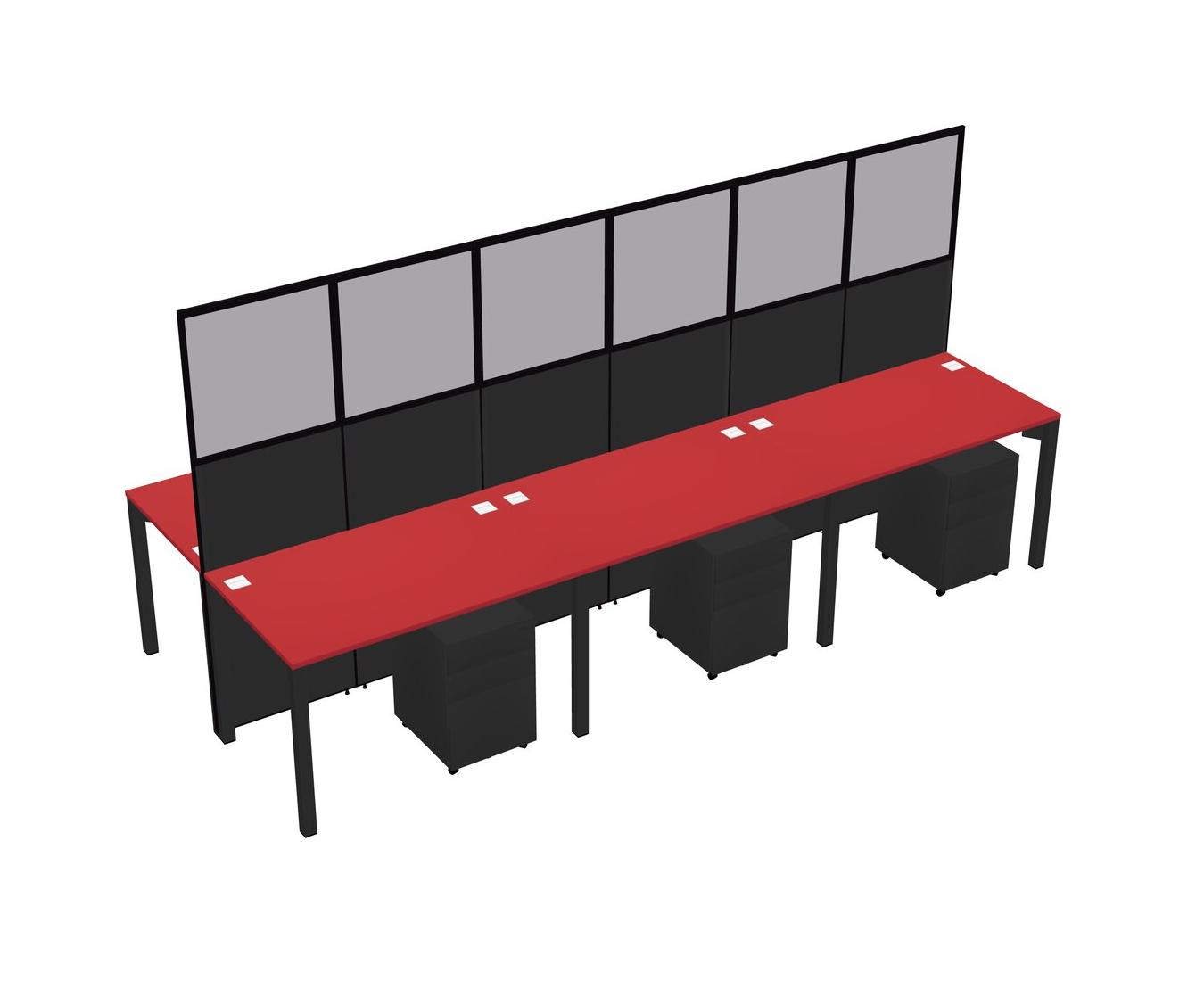 Prism Red Shared Rectangular Office Cubicle Panel System With Mobile Drawers For 6 Persons