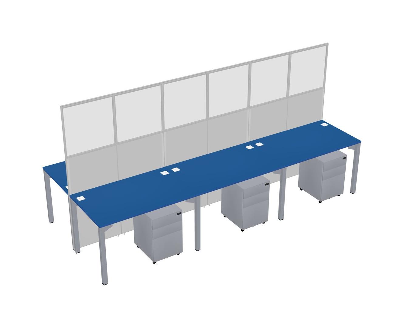 Prism Blue Shared Rectangular Office Cubicle Panel System With Mobile Drawers For 6 Persons