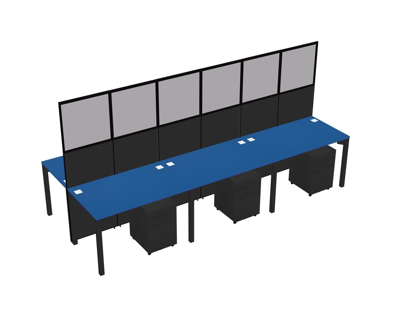 Prism Blue Shared Rectangular Office Cubicle Panel System With Mobile Drawers For 6 Persons