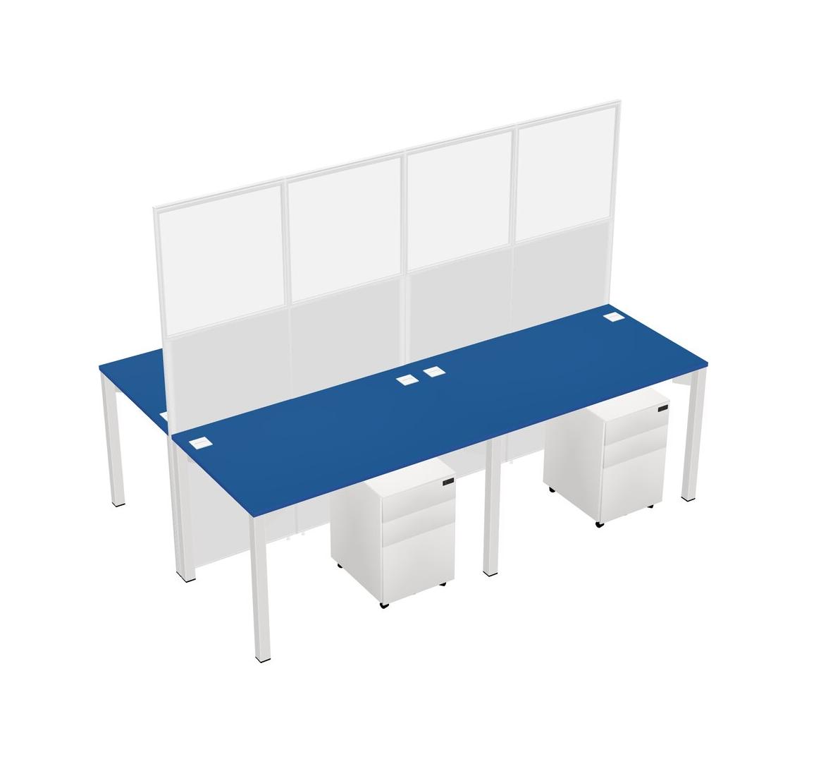 Prism Blue Shared Rectangular Office Cubicle Panel System With Mobile Drawers For 4 Persons