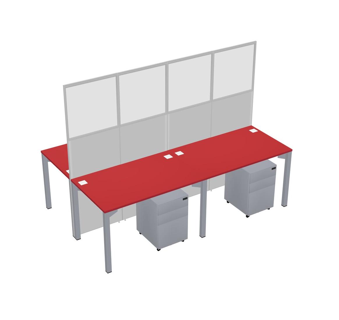Prism Red Shared Rectangular Office Cubicle Panel System With Mobile Drawers For 4 Persons