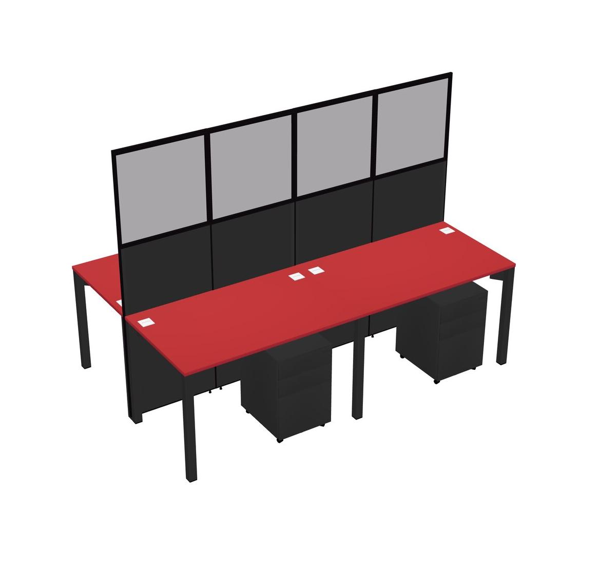 Prism Red Shared Rectangular Office Cubicle Panel System With Mobile Drawers For 4 Persons