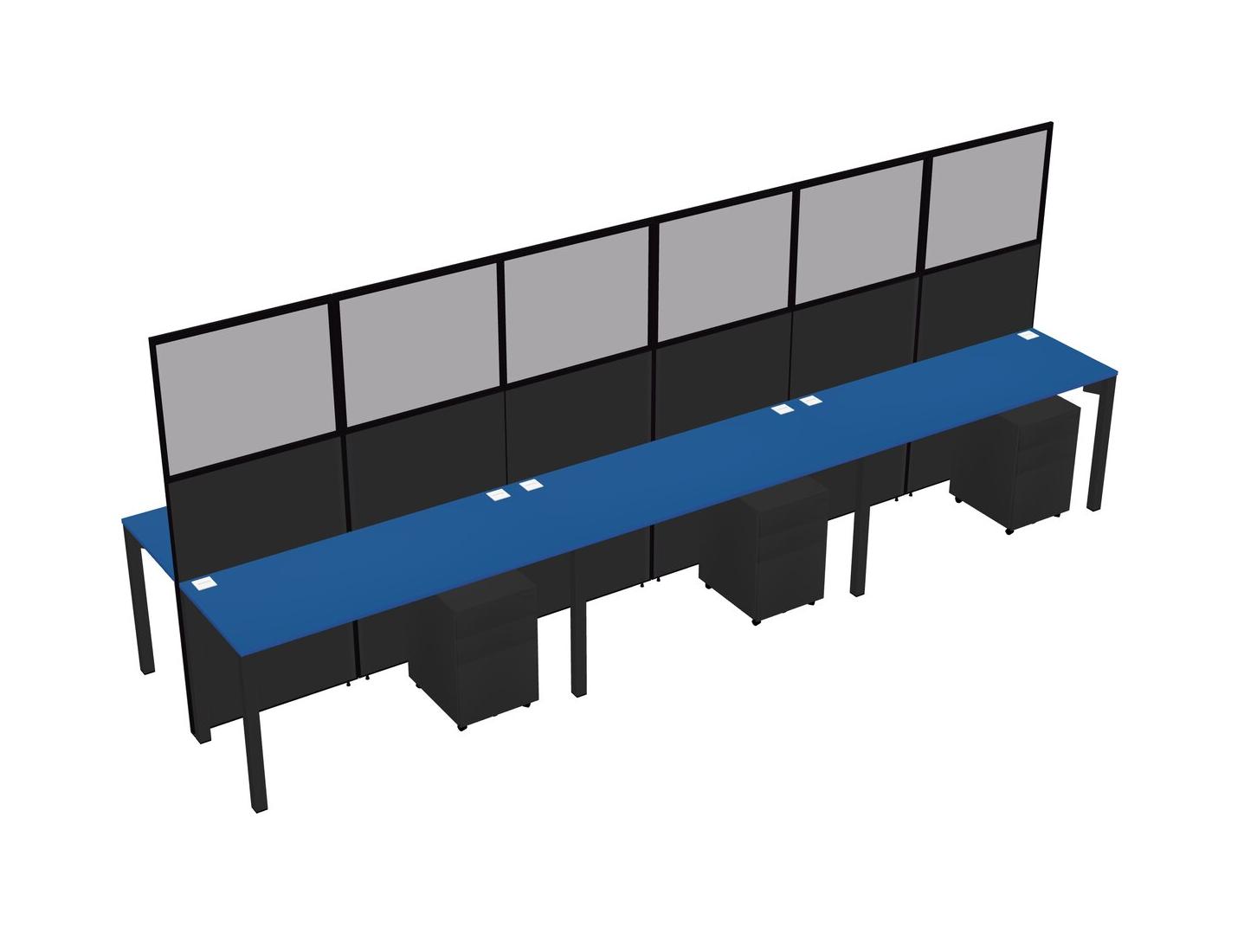 Prism Blue Shared Rectangular Office Cubicle Panel System With Mobile Drawers For 6 Persons