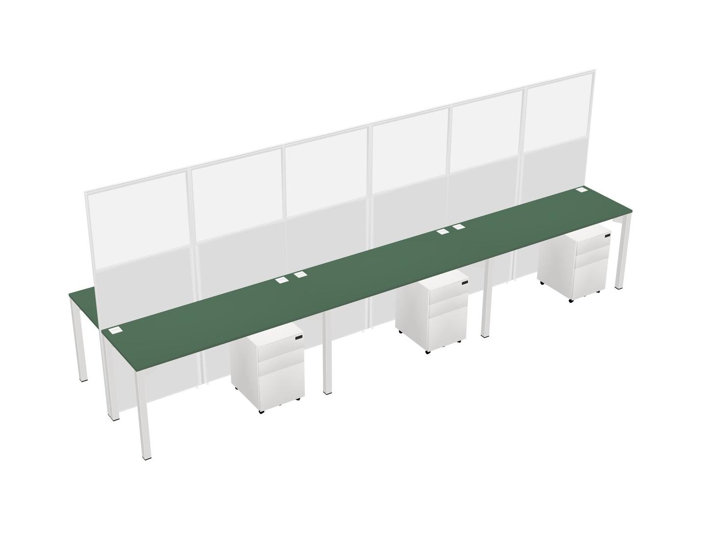Green Shared Rectangular Office Cubicle Panel System With Mobile Drawers For 6 Persons