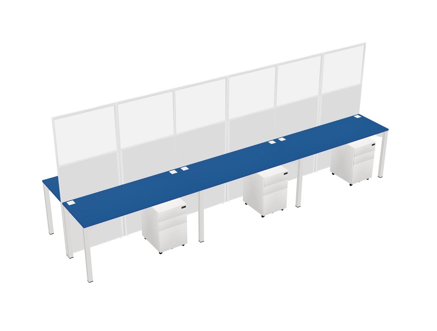 Prism Blue Shared Rectangular Office Cubicle Panel System With Mobile Drawers For 6 Persons