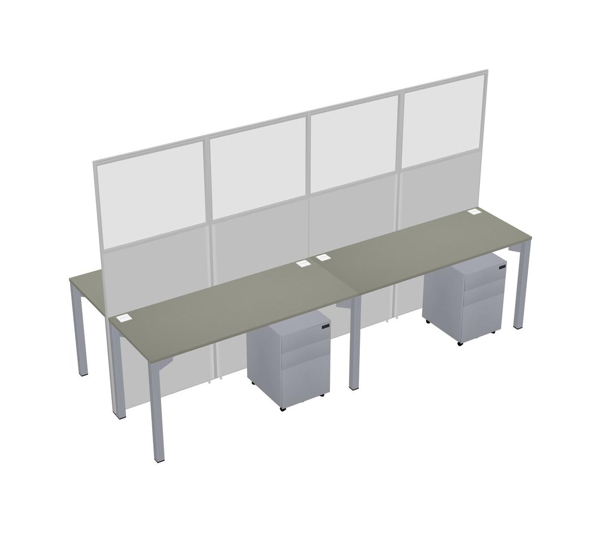 Grey Shadows Shared Rectangular Office Cubicle Panel System With Mobile Drawers For 4 Persons