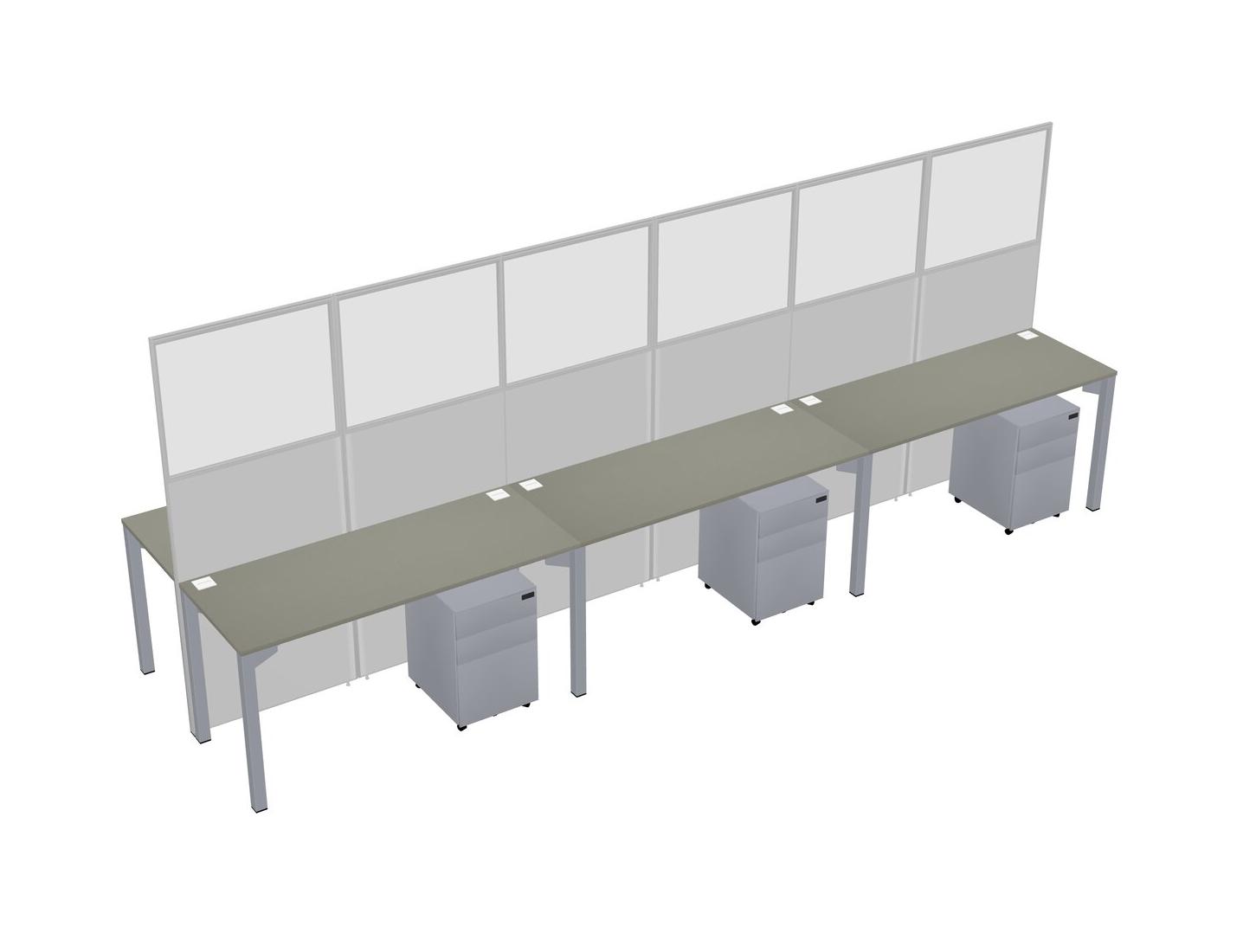 Grey Shadows Shared Rectangular Office Cubicle Panel System With Mobile Drawers For 6 Persons