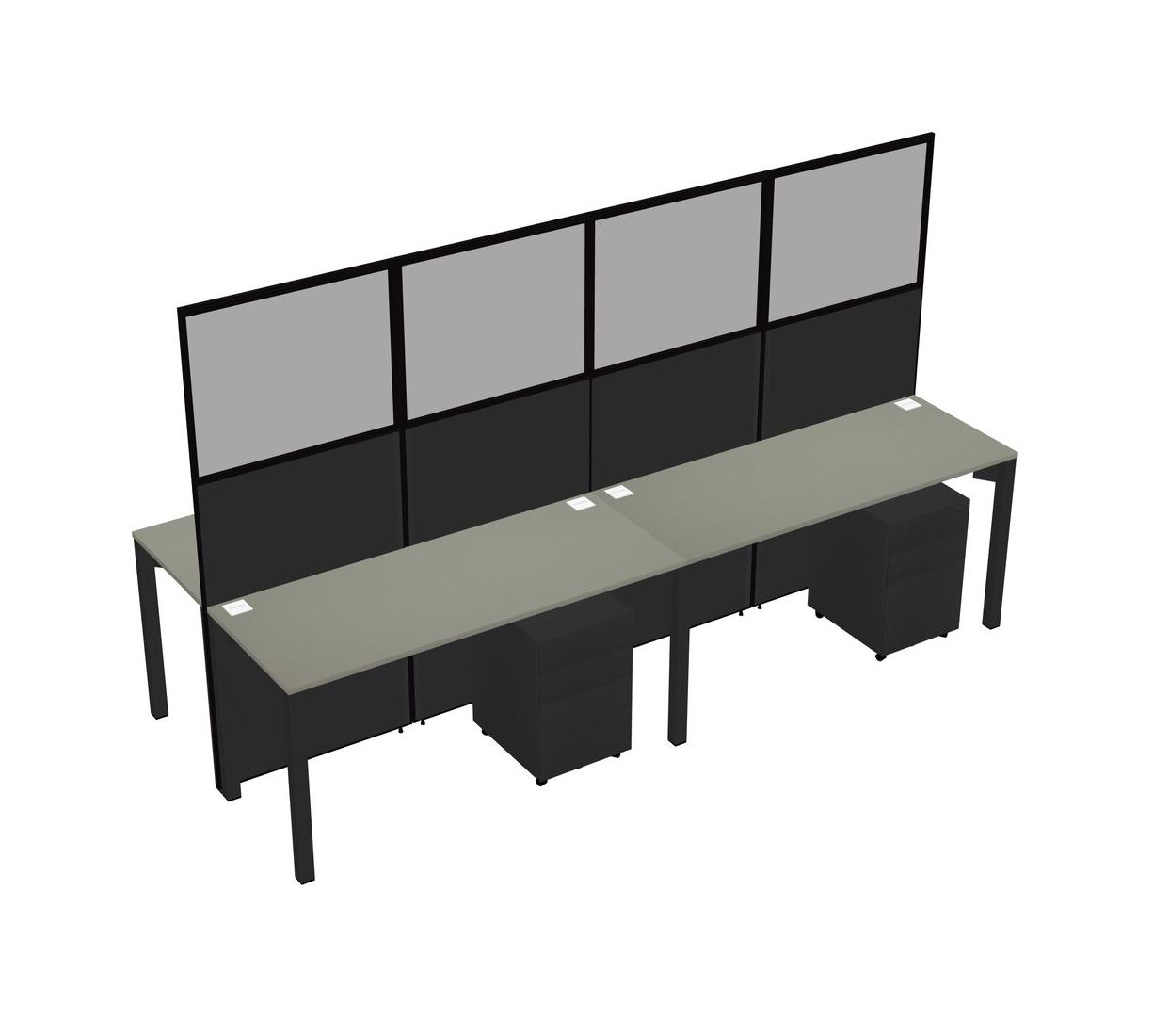 Grey Shadows Shared Rectangular Office Cubicle Panel System With Mobile Drawers For 4 Persons
