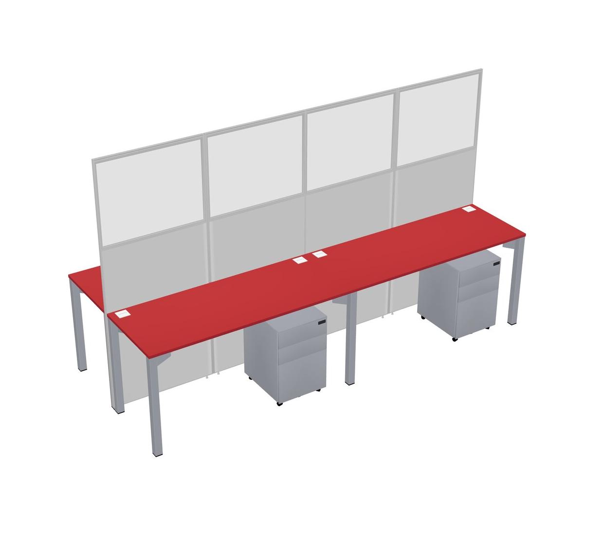 Prism Red Shared Rectangular Office Cubicle Panel System With Mobile Drawers For 4 Persons