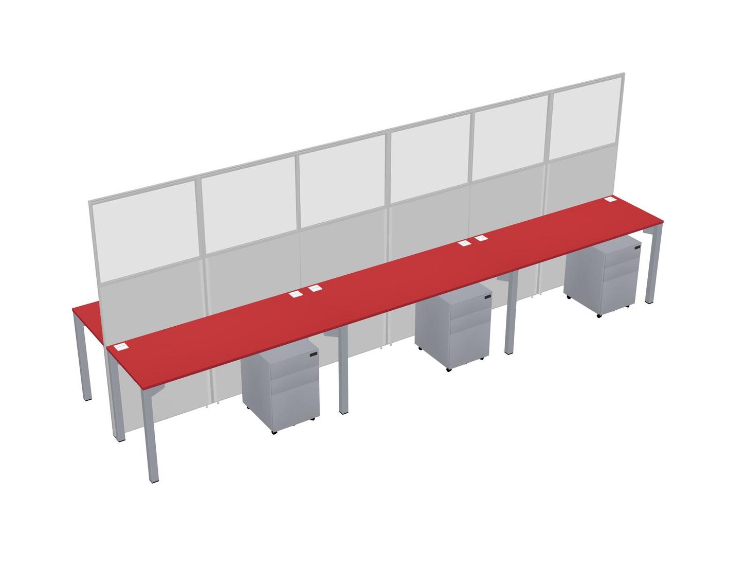 Prism Red Shared Rectangular Office Cubicle Panel System With Mobile Drawers For 6 Persons