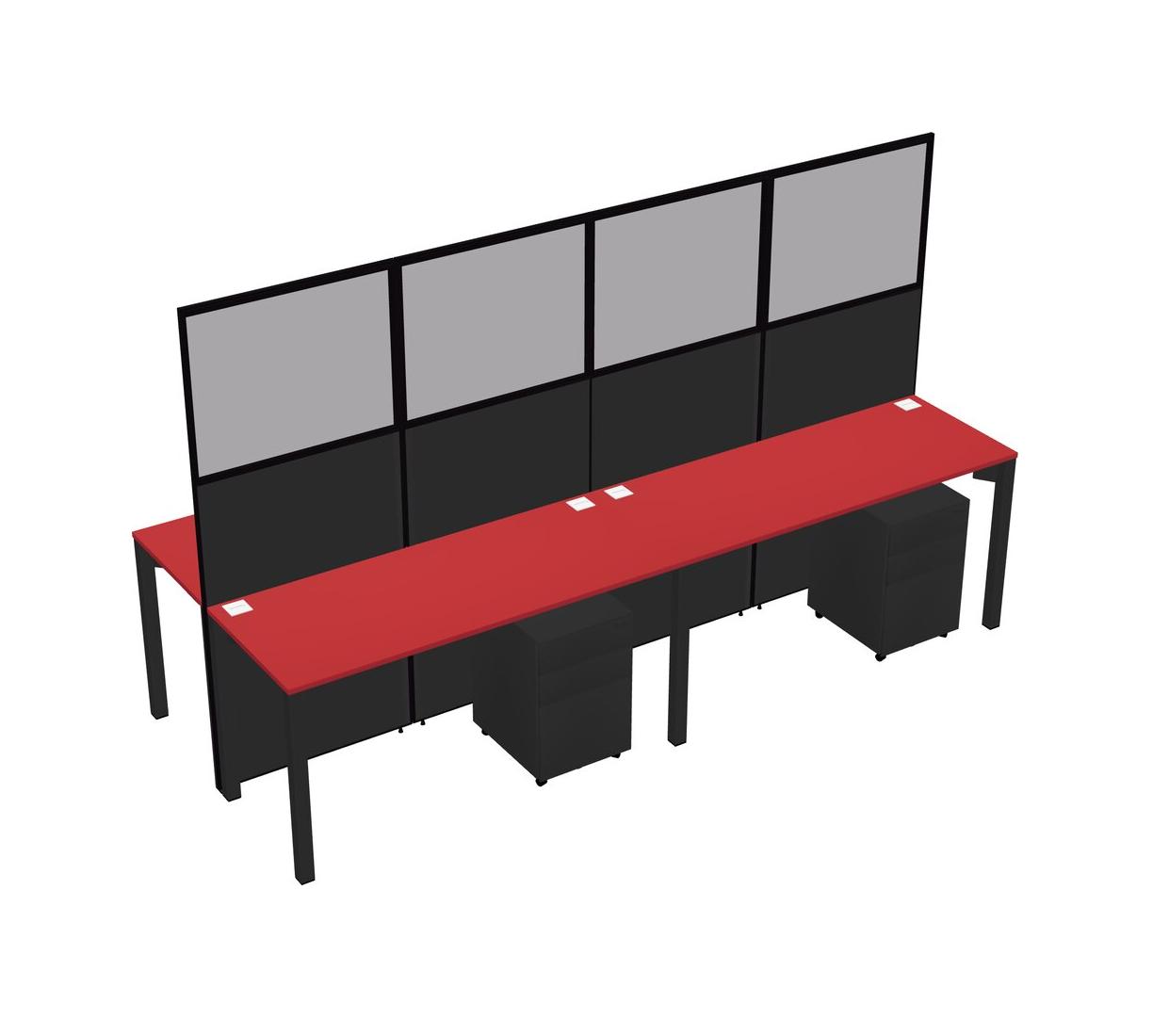 Prism Red Shared Rectangular Office Cubicle Panel System With Mobile Drawers For 4 Persons